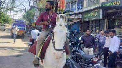 देवास में बैंक कर्मचारी का अनोखा अंदाज, घोड़े पर सवार...