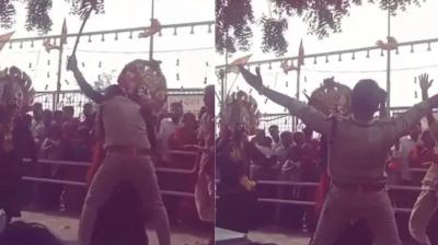 मैहर| के मां शारदा मंदिर परिसर में तैनात एक पुलिसकर्मी का वीडियो सोशल मीडिया पर तेजी से वायरल हो रहा है, जिसमें वह ड्यूटी के दौरान श्रद्धालुओं के साथ नाचते...