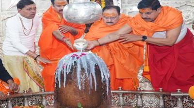 केंद्रीय स्वास्थ्य मंत्री नड्डा और मुख्यमंत्री डॉ. यादव ने किया भगवान महाकाल का अभिषेक