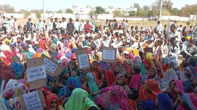 विस्थापन और मुआवजे की मांग पर किसानों-आदिवासियों का धरना