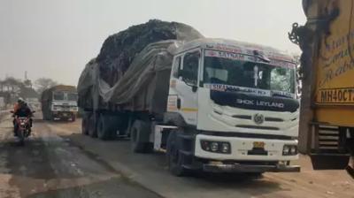 बदबूदार वेस्ट मटेरियल से ग्रामीण परेशान, ट्रकों को रोककर पुलिस के हवाले किया