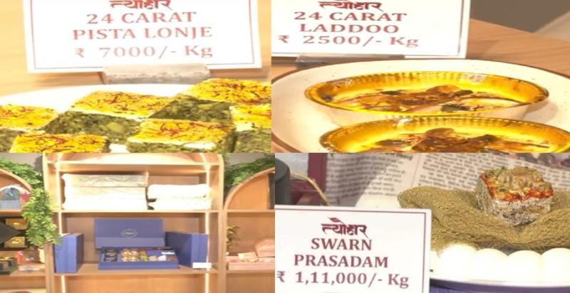 दीवाली नजदीक आते ही राजस्थान के जयपुर में स्थित 'त्योहार' शॉप काफी चर्चा में आ गई है। जयपुर के वैशाली नगर में स्थित इस दुकान में 24 कैरेट गोल्ट से बनी 'स्वर्ण भस्म पाक' और चांदी से बनी 'चांदी भस्म पाक' जैसी मिठाइयां उपलब्ध हैं। इनकी कीमत 45,000 से 1.11 लाख प्रति किलोग्राम है।