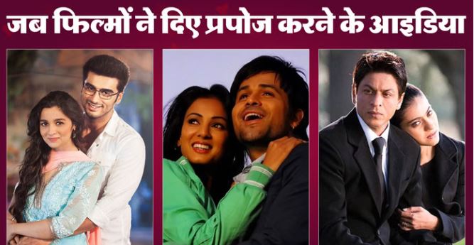 साल के दूसरे महीने फरवरी को प्यार का महीना कहा जाता है। इस महीने की 7 से लेकर 14 तक तारीखें काफी खास होती हैं। सबसे खास दिन 14 फरवरी होता है। इस दिन को वैलेंटाइन डे (प्रेम दिवस) के रूप में मनाया जाता है। इस दिन कई प्रेमी और प्रेमिकाएं अपने पार्टनर से दिल की बात कहते हैं। कई पार्टनर अपने दिल की बात नहीं कह पाते हैं। ऐसे में हम आपके सामने कुछ फिल्मों का जिक्र कर रहे हैं, जिनसे आप अपने पार्टनर को प्रपोज करने के बेहतरीन आइडिया ले सकते हैं। इस फिल्म में अर्जुन कपूर और आलिया भट्ट ने अहम किरदार निभाया है। दोनों के बीच कॉलेज में पढ़ते हुए दोस्ती होती है, फिर प्यार होता है। अर्जुन कपूर आलिया भट्ट के जॉब इंटरव्यू में पहुंचते हैं। यहां वह बिना लाग लपेट के आलिया से कहते हैं कि वो सिर्फ अनन्या के साथ ही अपनी जिंदगी बिताना चाहते हैं। यह सुनकर आलिया खुश हो जाती हैं।फिल्म में रणबीर कपूर, दीपिका पादुकोण को नए साल पर प्रपोज करते हैं। वह लंबे समय तक खुद को तलाशने के बाद दीपिका पादुकोण को चुनते हैं और अपने प्यार का इजहार करते हैं। वह बताते हैं कि दिल की बात सुनकर अपने प्यार को चुनना सबसे बड़ा साहस होता है।इस फिल्म में रणवीर सिंह और अनुष्का शर्मा ने अहम किरदार निभाया है। दोनों मिलकर लोगों की शादी में सजावट का काम करते हैं। इस बीच दोनों को आपस में प्यार हो जाता है। रणवीर सिंह, अनुष्का शर्मा से कहते हैं 'तेरे बिना किसी चीज में मौज नहीं है, ना चाय में. ना चाउमीन में'। रणवीर की ये बात अनुष्का का दिल जीत लेती है।इस फिल्म में शाहरुख खान बहुत ही प्यार से काजोल को प्रपोज करते हैं। शाहरुख, काजोल को शहर की ऊंची जगह पर ले जाते हैं। वह काजोल को शहर का सबसे अच्छा नजारा दिखाते हैं। काजोल यह नजारा देख कर हैरान हो जाती हैं। वह शाहरुख को शादी के लिए प्रपोज करती हैं।फिल्म में सलमान खान ने राधे का और आयशा टाकिया ने जानवी का रोल किया था। दोनों की प्रेम कहानी एक हैरान कर देने वाले मौके से शुरू होती है। इसमें सलमान खान ने आयशा टाकिया को लेकर कहा 'जानवी सिर्फ मेरी है और मैं उसके लिए कुछ भी कर सकता हूं।' जब सलमान ने आयशा को बचाया तब आयशा टाकिया ने सलमान खान को प्रपोज किया।फिल्म में इमरान हाशमी को सोनल चौहान से प्यार हो जाता है। सोनल चौहान कार से घर जा रही होती हैं। ऐसे में इमरान हाशमी उनकी गाड़ी के सामने अपनी गाड़ी लगाकर उन्हें प्रपोज करते हैं। इस प्रपोजल को उस वक्त बहुत पसंद किया गया था।फिल्म में सलमान खान ने जिस तरह से प्रियंका चोपड़ा को प्रपोज किया, वह उस वक्त लोगों को खूब पसंद आया था। वह क्रिकेट के मैदान में पहुंचते हैं और पूरे स्टेडियम के सामने प्रियंका से प्यार का इजहार करते हैं। वह अपनी कमजोरियों को स्वीकार करते हैं, फिर प्रियंका से प