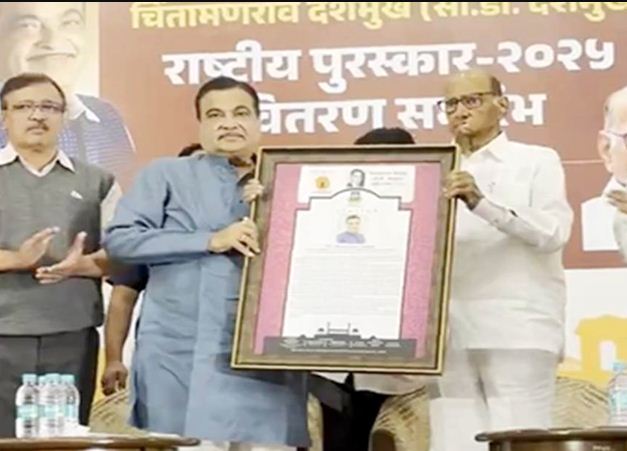 गडकरी चिंतामनराव देशमुख अवॉर्ड से सम्मानित, शरद पवार ने की जमकर तारीफ