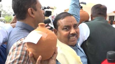 बजट से पहले विपक्ष का हंगामा, खाली गुल्लक लेकर किया प्रदर्शन
