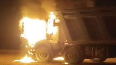सादात बाजार में हादसे के बाद गाजीपुर में हंगामा, गुस्साई भीड़ ने डंपर में आग लगाई