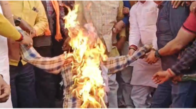 राहुल गांधी के बयान पर बवाल: भाजपाइयों ने फूंका पुतला, माफी की मांग