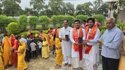 तुलसी का महत्व बताते हुए किया बीजरोपण, अंजनीलाल धाम पर समारोह पूर्वक मनी तुलसी जयंती