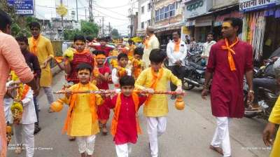 श्री अलबेला हनुमान मंदिर जोगी मोहल्ला ब्यावरा से महिला मंडल ने निकाली कावड़ यात्रा, द्वादश ज्योत्रिलिंग का किया अभिषेक